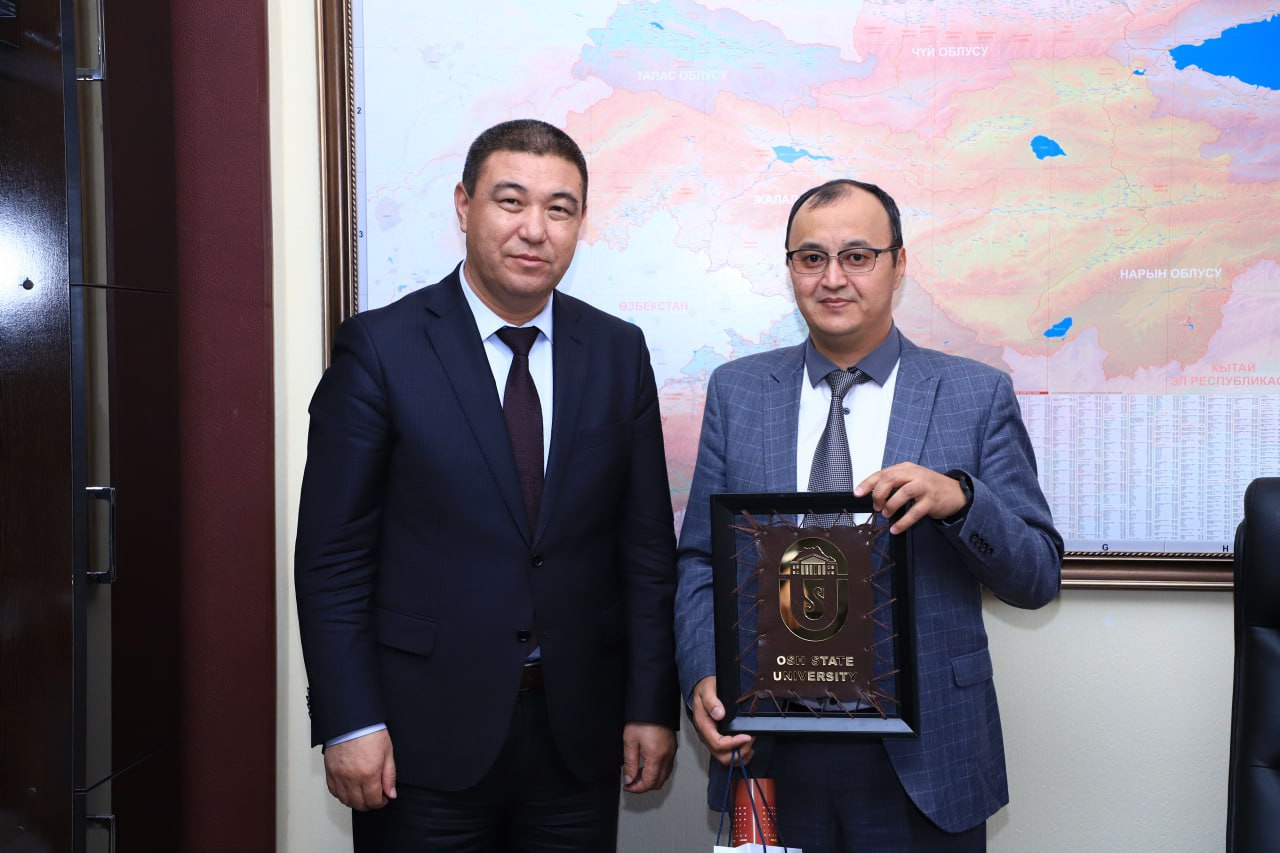 Al-Farabi Kazak Ulusal Üniversitesi’nin Bişkek Şubesinin Müdürü Jamin Sheyshenov, OşDÜ’nün eğitim işlerinden sorumlu rektör yardımcısı Zamirbek Bojonov ile bir araya gelip iki taraf işbirliği anlaşması imzaladı.