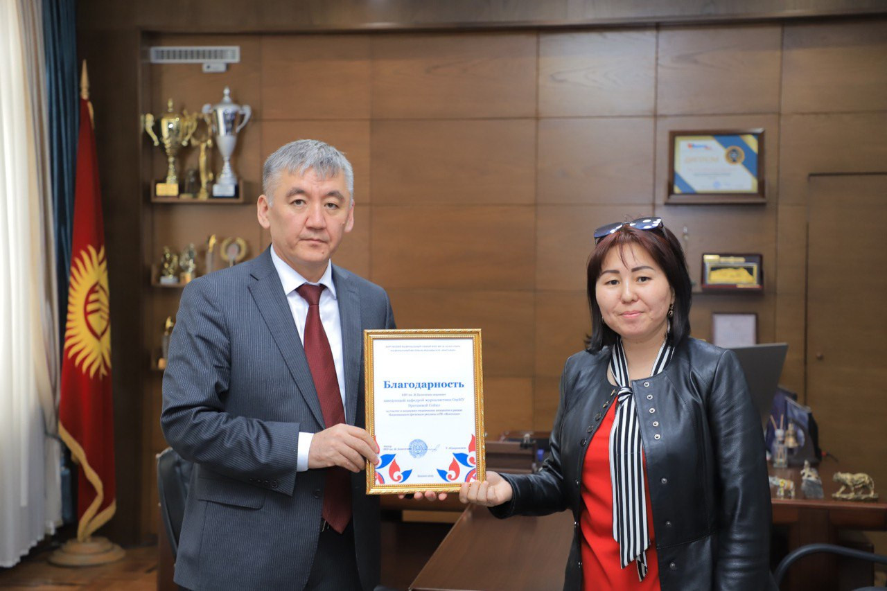 Festival sonunda Kudaiberdi Kozhobekov ve gazetecilik bölümü başkanı Seil Ergeshova, Yusuf Has Hacip Ulusal Üniversitesi'nden teşekkür mektubu aldı.