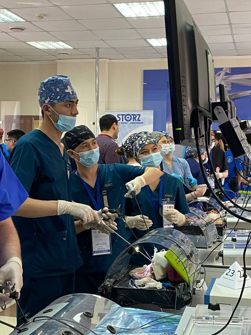 OşDÜ ekibi, Tıp Fakültesi "Ameliyat" kulübü başkanı öğretim üyeleri Bektur Erkinali uulu ve Akylbek Shakirov liderliğinde katıldı. Ekip, yemek borusu fıtığı üzerinde laparoskopik bir alet kullanarak ameliyat yaptı.