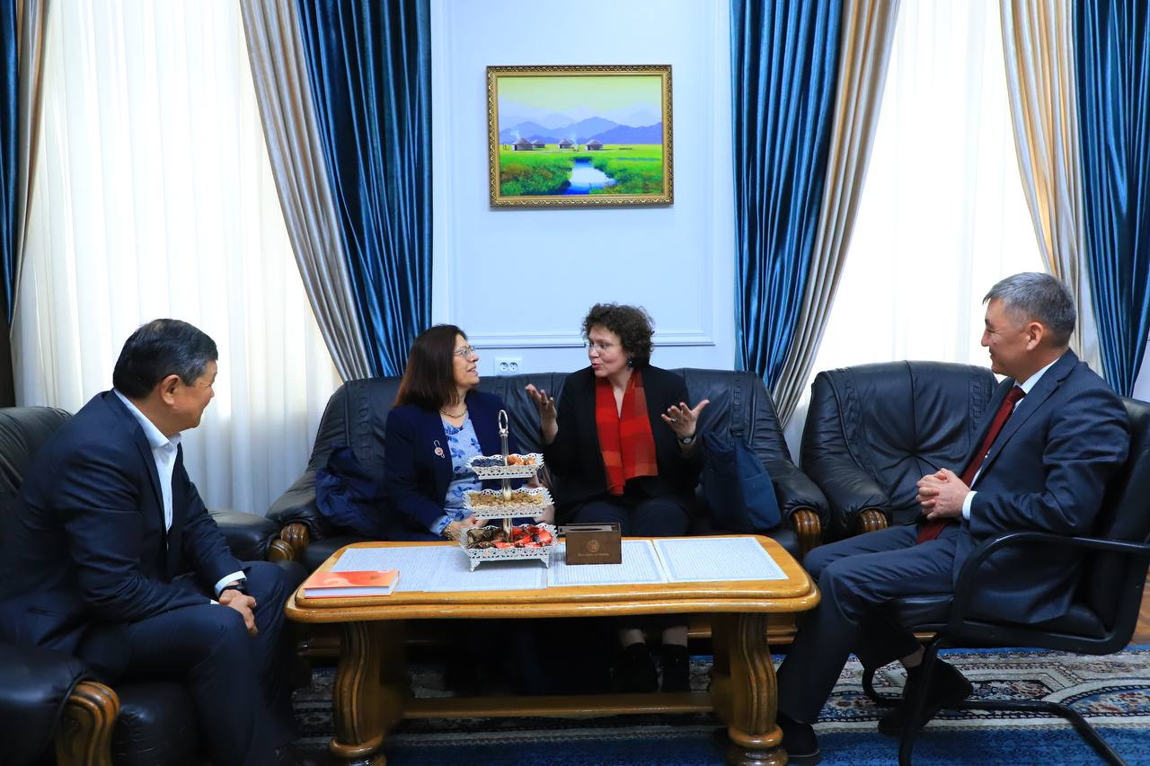Poitiers Üniversitesi İtalyan Dili ve Medeniyeti Bölümü Profesörü ve Orta Asya üniversiteleri ile işbirliğinden sorumlu Lisia Baghini ve Poitiers Üniversitesi Slav ve Doğu Dilleri Bölümü çalışanı Galina Subbotina, OşDÜ rektörü Kudaiberdi Kozhobekov ile bir araya geldi.