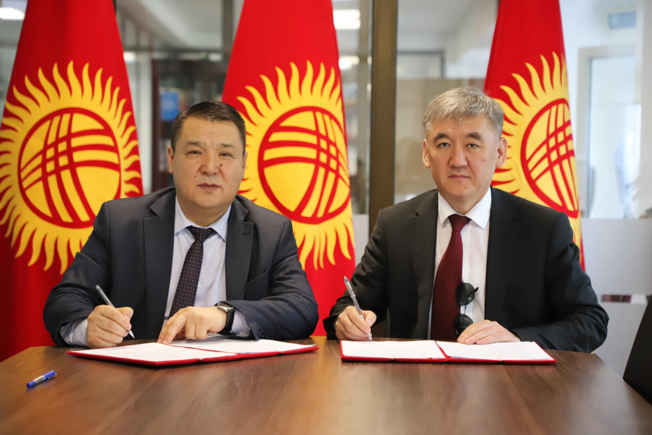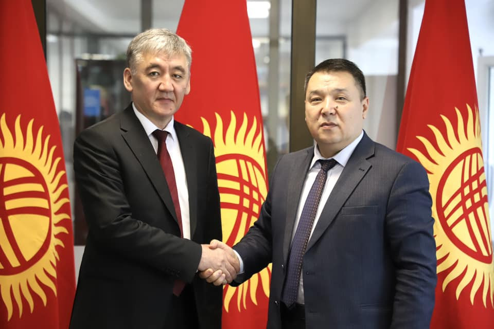 Oş Devlet Üniversitesi Rektörü Kudaiberdi Kozhobekov Ulusal Televizyon ve Radyo Yayın Kurumu Genel Müdürü Bolotbek Tillebaev ile bir araya geldi.