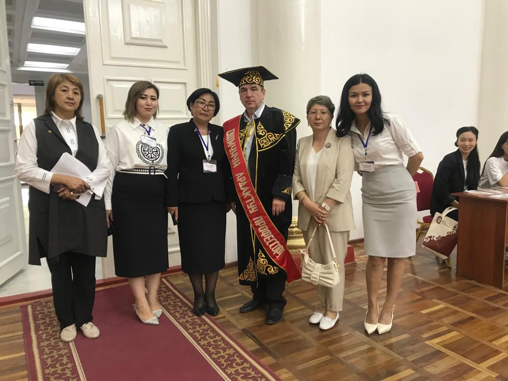 Etkinlikte Rus bilim adamı, Filoloji Doktoru Profesör Vladimir Klyaus'a “OşDÜ’nün Onurlu Profesörü” unvanı verildi.