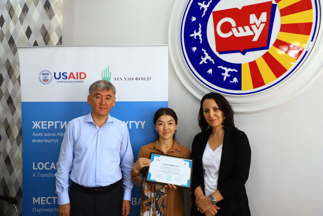 ОшМУда 11-июлда үч тараптуу жолугушуу болуп өттү. Жолугушууга окуу жайдын ректору Кудайберди Кожобеков, Ага Хан Фондунун Кыргызстандагы филиалынын жетекчиси Давлатсултон Доргабекова, Американын эл аралык өнүктүрүү агенттигинин (USAID) долбоорлорду башкаруу боюнча адиси Зейнеп Исакова баштаган өкүлдөр катышты.