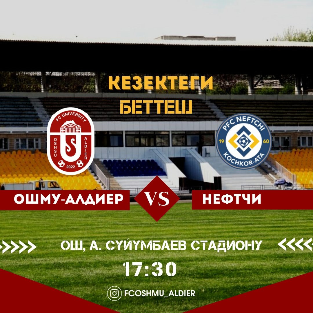 14 Eylül’de Kırgız Cumhuriyeti Premier Ligi şampiyonasının 21. turu kapsamında “OşDÜ-Aldiyer” futbol kulübü Oş’ta, Kochkor-Ata takımı “Neftçi”yi ağırladı. Maç “OşDÜ-Aldiyer”in 2:1’lik üstünlüğüyle sona erdi.
