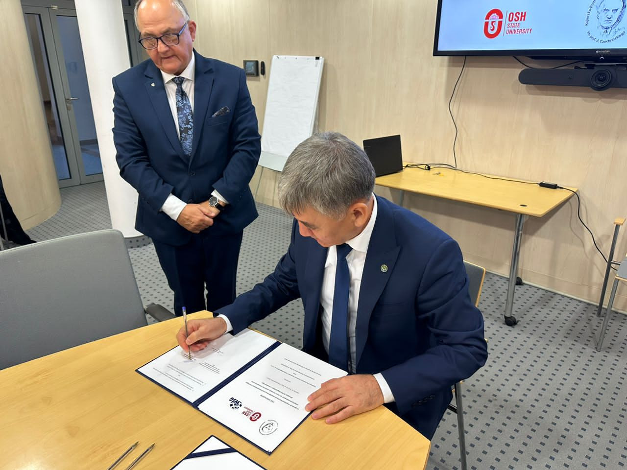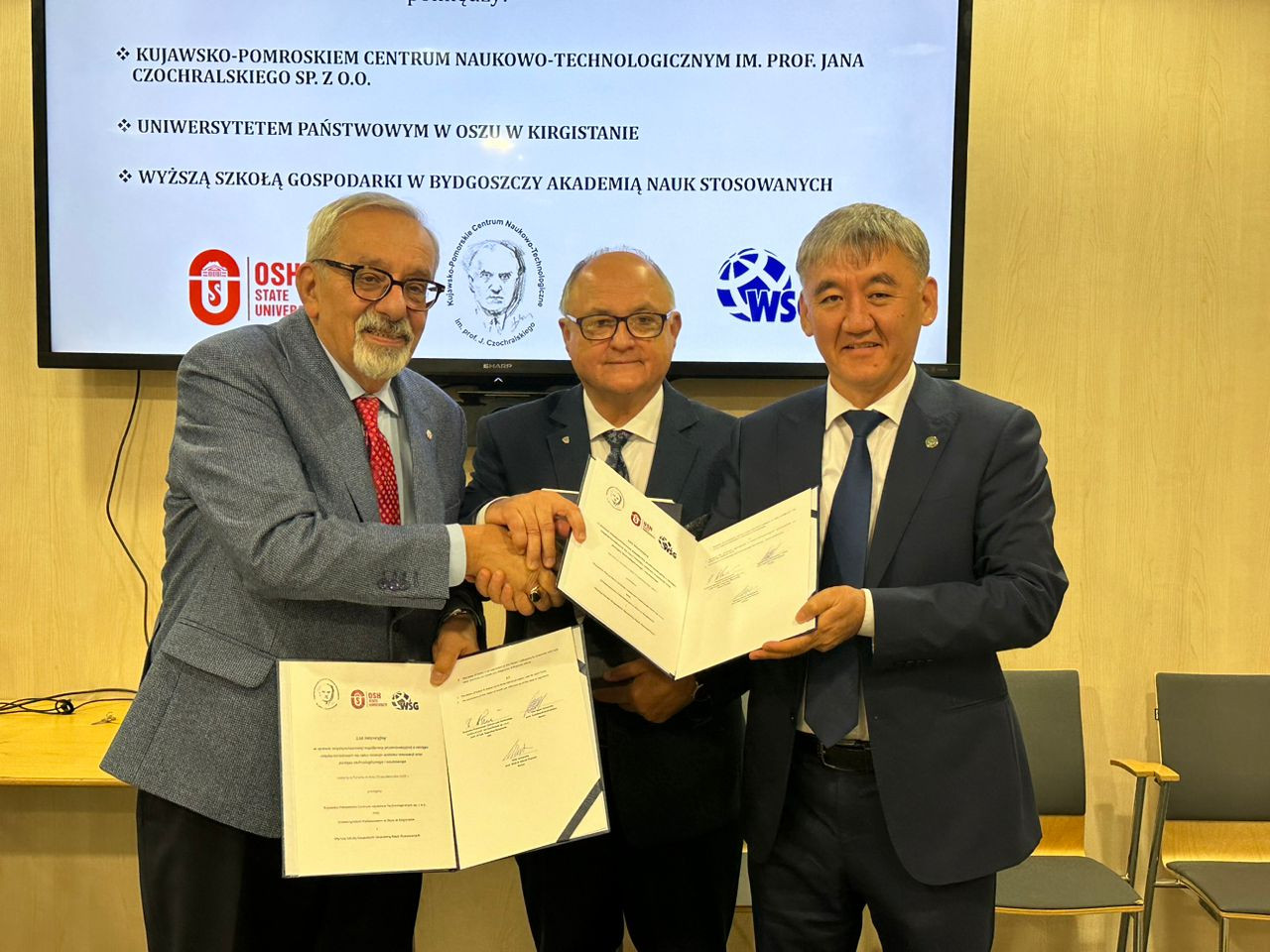 Heyet, ziyaretlerine üçlü bir anlaşmanın imzalanma törenine katılarak başladı. Bu anlaşmaya göre Oş Devlet Üniversitesi'nde yakın bir zamanda İnovasyon ve Teknoloji Merkezi kurulacak. Anlaşma, Bydgoszcz Belediye Başkanlığı İnovasyon ve Teknoloji Merkezi, Oş Devlet Üniversitesi ve Bydgoszcz Ekonomi Üniversitesi arasında yapıldı.
