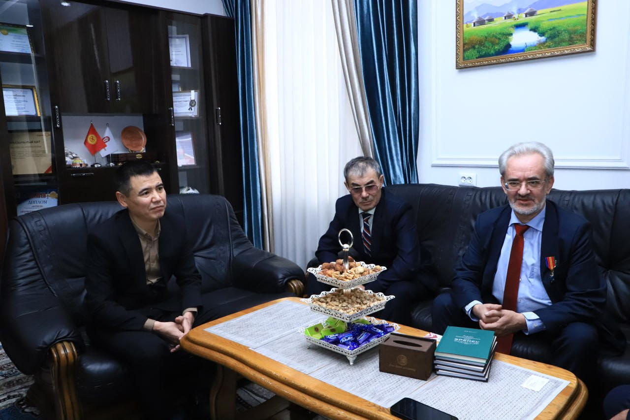 Rektör Kozhobekov ise hediye için teşekkürlerini iletti ve Profesör Kozodoy'un kitabının Oş'ta başarılı bir şekilde sunulmasını dikkate aldı.