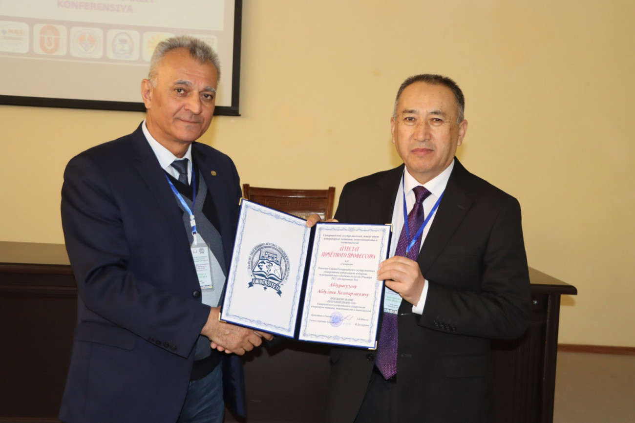 Oş Devlet Üniversitesi’nden Prof. Dr. Abdugani Abdurasulov, Semerkant Devlet Veterinerlik, Hayvancılık ve Biyoteknoloji Üniversitesi tarafından “Onursal Profesör” unvanına layık görüldü.
