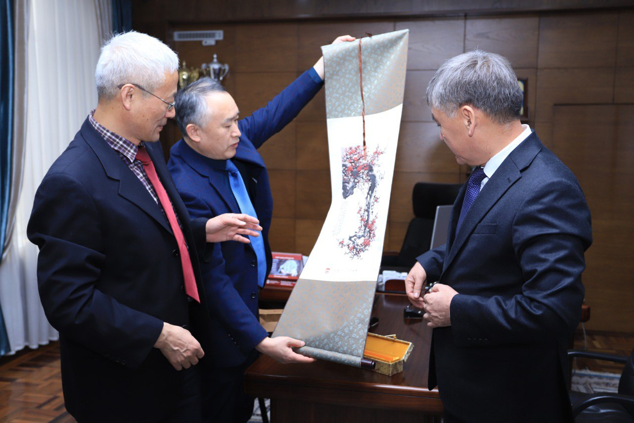 Üniversitenin rektör yardımcısı Sayın Yao Zhenbiao başkanlığındaki Çin heyeti, Oş Devlet Üniversitesi rektörü Kudaiberdi Kozhobekov tarafından kabul edildi.