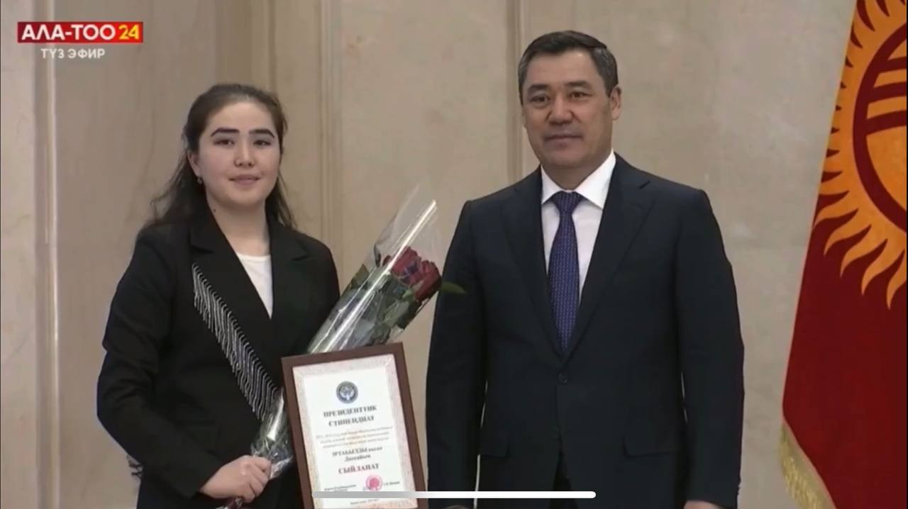 Oş Devlet Üniversitesi’nden (OşDÜ) beş öğrenci bu prestijli ödülle onurlandırıldı: Aiperi Nurbek kyzy (Tıp Fakültesi), Datkayym Ertabyldy kyzy (MIT Fakültesi), Keneshbek Emilbek uulu (Fizik-Teknik Fakültesi), Saikal Nurmamatova (Dünya Dilleri ve Kültürleri Fakültesi) ve Miraida Cholponkul kyzy (Tarih ve Sosyal Hizmet Fakültesi).