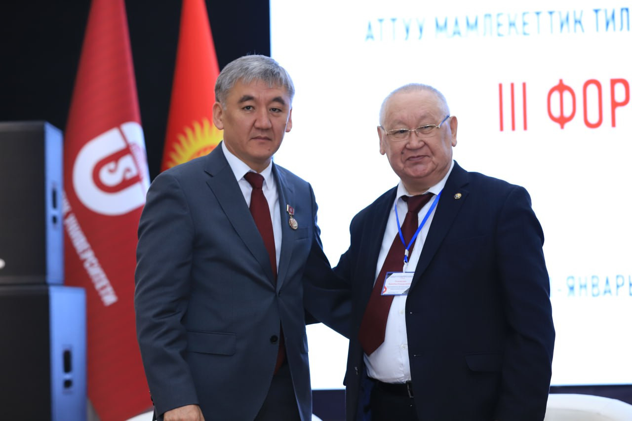 Devlet dilinin geliştirilmesine sağladıkları önemli katkılardan dolayı, Rektör Kudayberdi Kozhobekov ve Devlet Dil ve Sosyal İşlerden Sorumlu Rektör Yardımcısı Mastura Sharipova, Kırgız Cumhuriyeti Cumhurbaşkanı altındaki Devlet Dil Komisyonu tarafından saygın “Kırgız Dili” rozeti ile ödüllendirildi.