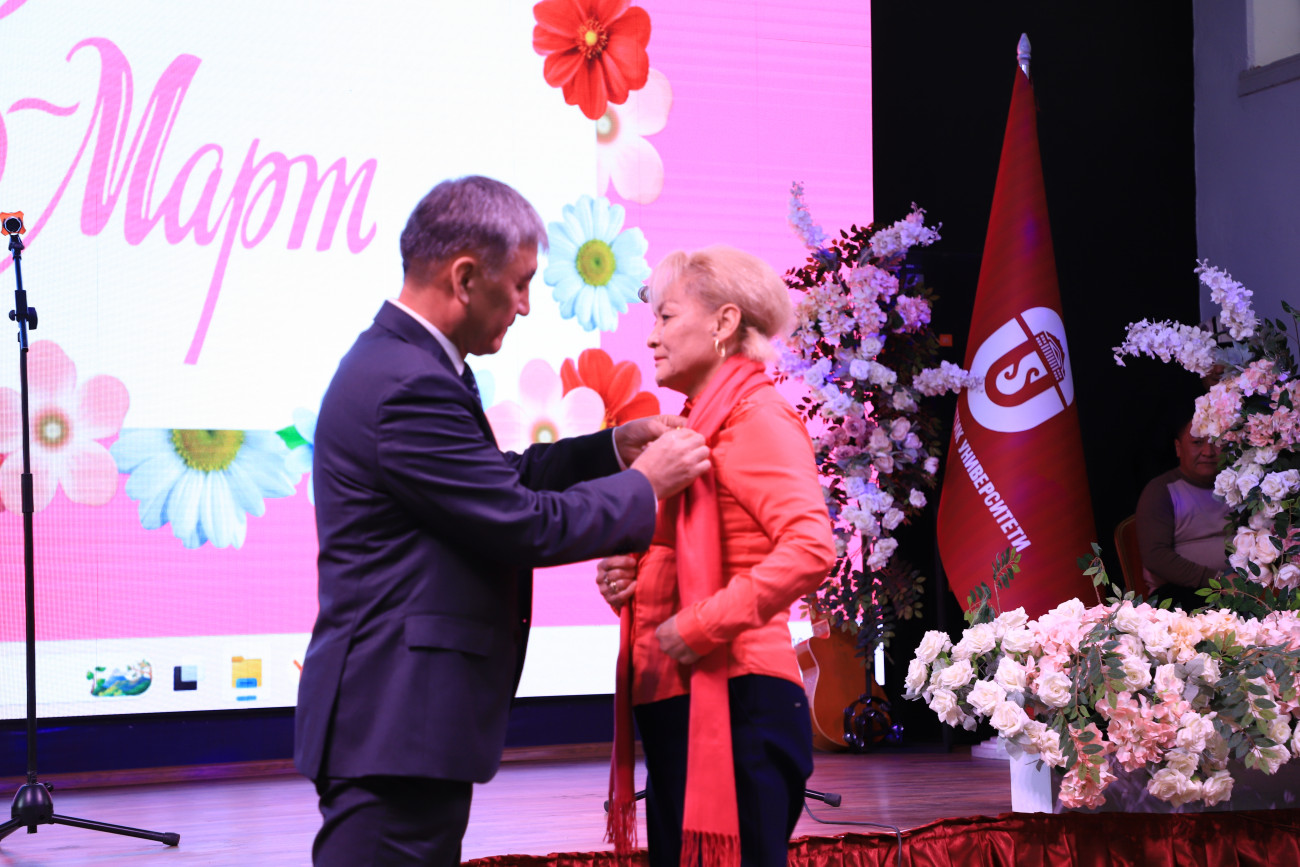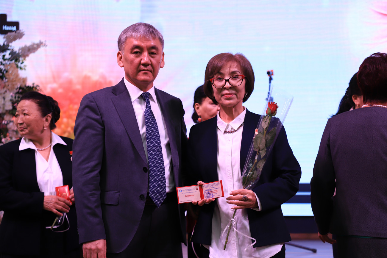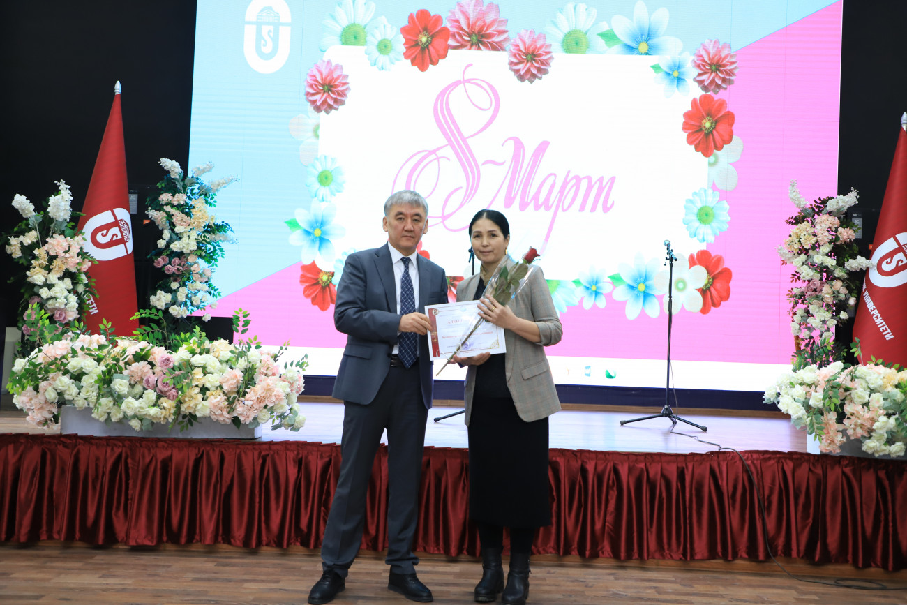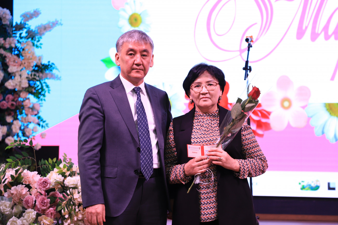 Etkinlikte Rektör Kudaiberdi Kozhobekov üniversitenin tüm beyleri adına tebriklerini iletti. Toplam öğretim üyelerinin yüzde 60’ının kadın olduğunu belirterek üniversitedeki kadınların aktif katılımını vurguladı. Dahası, üniversitedeki doktora derecesine sahip kişilerin neredeyse yarısının ve adaylarının yarısından fazlasının kadın olduğu, kadınların akademideki başarılarına ilişkin etkileyici istatistikler paylaştı. Özellikle 2023-2024 akademik yılında 23 gururlu kadın akademisyene ileri dereceler verilmiştir.