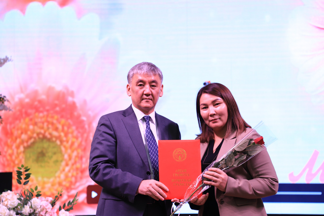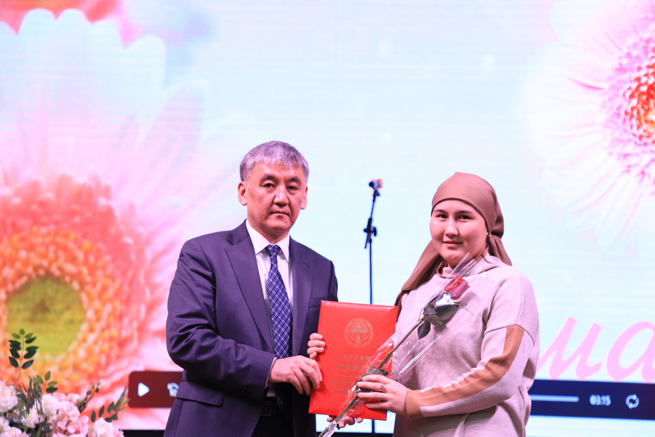 Gece aynı zamanda kadınların Oş Devlet Üniversitesi’nin gelişimine yaptığı paha biçilmez katkıların ve öğrencilere kaliteli eğitim sağlamaya yönelik özverili çabalarının takdir edildiği bir platform görevi gördü. 21 Şubat Uluslararası Anadil Günü kutlamalarına aktif olarak katılanlar, üniversitenin amblemiyle onurlandırıldı. Aralarında “Emeğin Değeri”, fahri diplomalar ve mali ödüllerin de bulunduğu ödüller, hak sahiplerine takdim edildi.