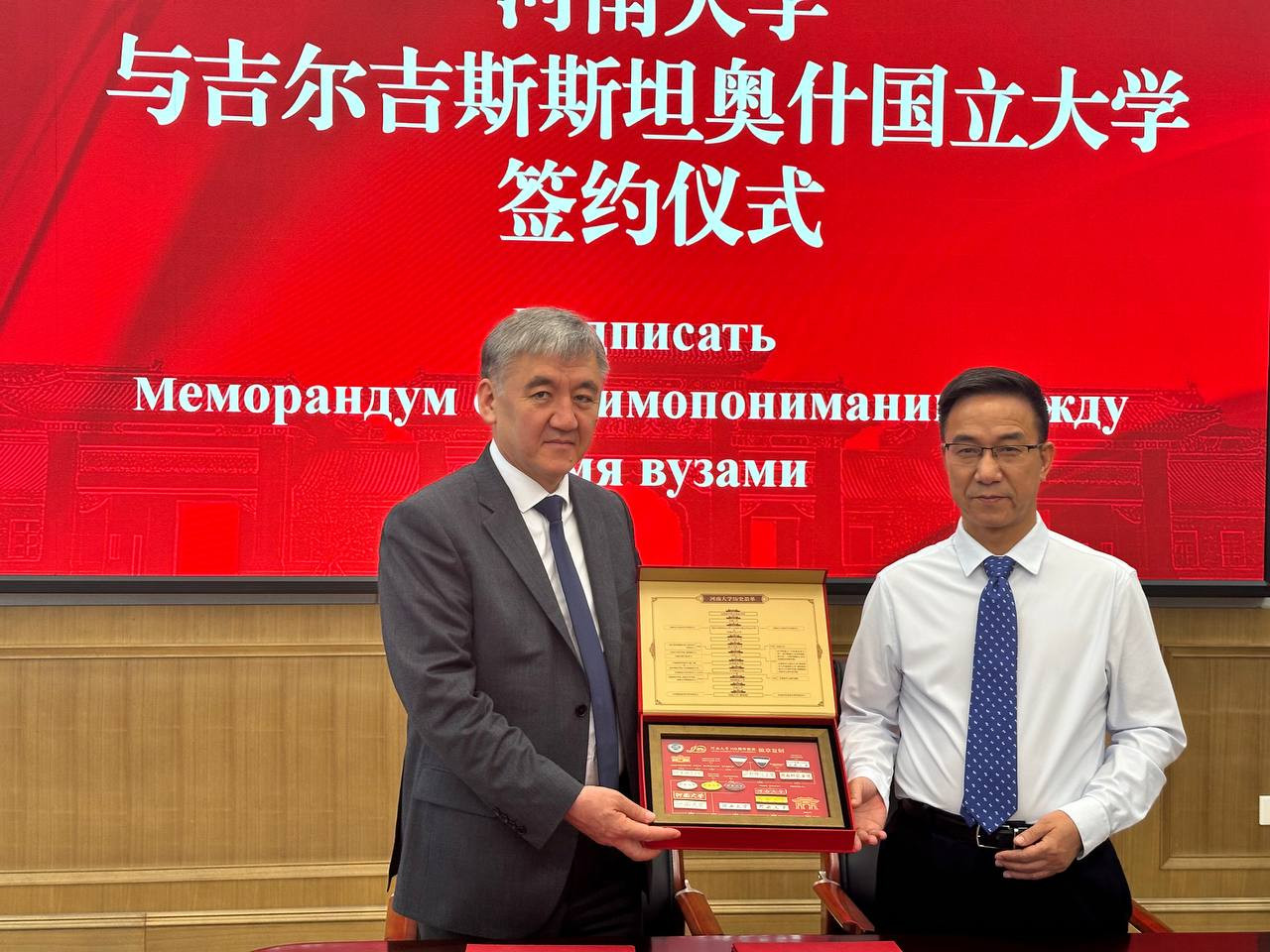 Oş Devlet Üniversitesi rektörü Kudaiberdi Kozhobekov, Konfüçyüs Enstitüsü müdürü Toktosun Aitikeev ve Çin dili ve sinoloji bölümü başkanı Marat Abdykulov’dan oluşan heyet, Çin Halk Cumhuriyeti’ne yaptığı çalışma ziyareti kapsamında Henan Üniversitesi’ni ziyaret etti.