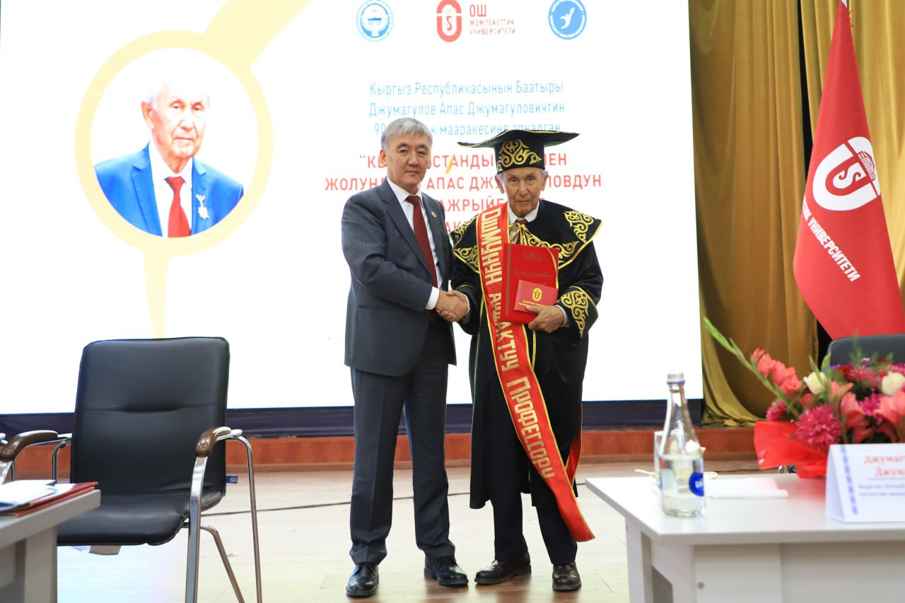 Konferans sırasında Apas Jumagulov’a “Oş Bölgesinin Onurlu Vatandaşı” ve “OşDÜ’nün Onurlu Profesörü” unvanları verildi.