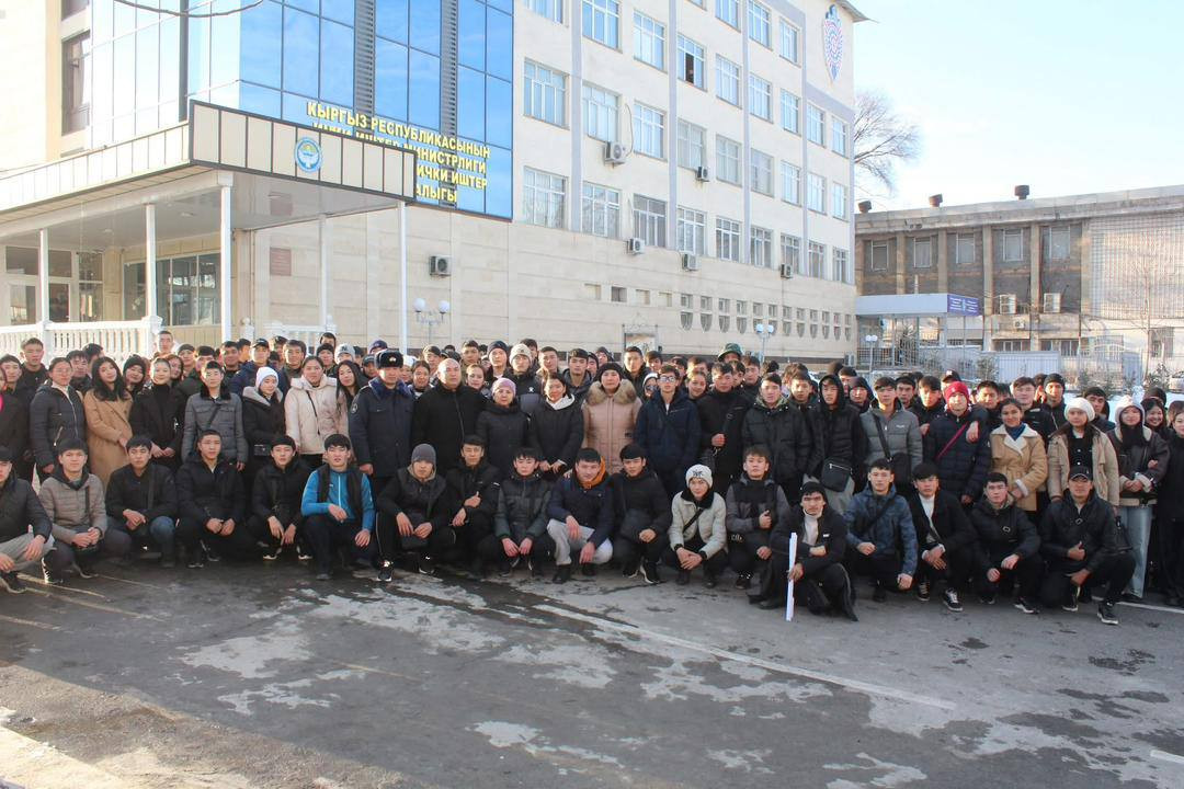Oş Devlet Üniversitesi Finans ve Hukuk Fakültesi öğrencileri, Oş Bölgesel İç İşleri Departmanı tarafından düzenlenen bir açık kapılar gününe katıldı. Fakültenin ikili eğitim programının bir parçası olarak düzenlenen bu etkinliğe, “Hukuk ve Kolluk Kuvvetleri” alanında uzmanlaşmış birinci ve ikinci sınıf öğrencileri katıldı.