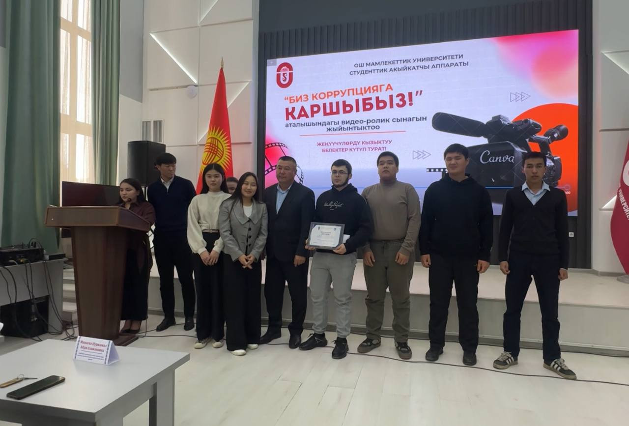 28 Şubat’ta Oş Devlet Üniversitesi, fakülteler arası video yarışması “Biz Yolsuzluğa Karşıyız!”ın sonuçlarını açıkladı.