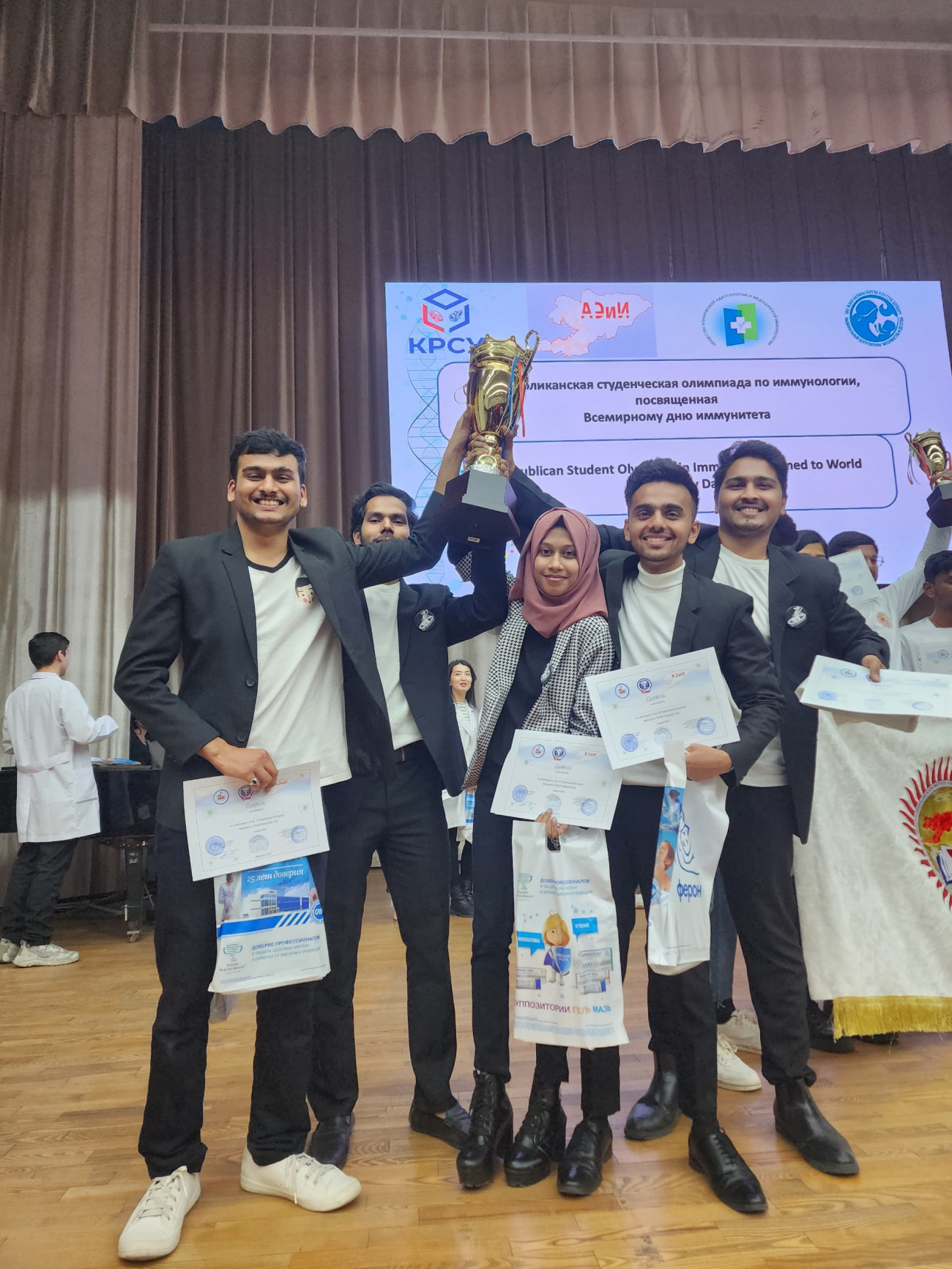 Oş Devlet Üniversitesi Uluslararası Tıp Fakültesi’nden MicroAvengers takımı, Dünya Bağışıklık Günü onuruna düzenlenen Milli Öğrenci İmmünoloji Olimpiyatı’nda birinci oldu.