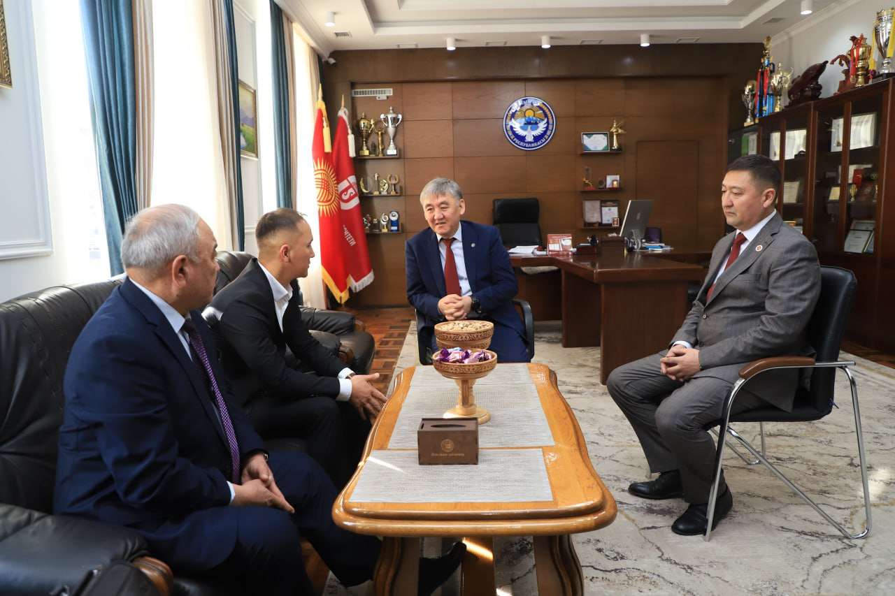 Rektör Kudaiberdi Kozhobekov ile yaptıkları görüşmede, üniversite yönetimi ile sendika arasındaki sosyal ortaklar olarak işbirliğini görüştüler. Ortak girişimlere sürekli destek sağlanacağı vurgulandı.