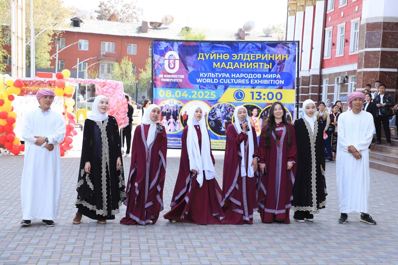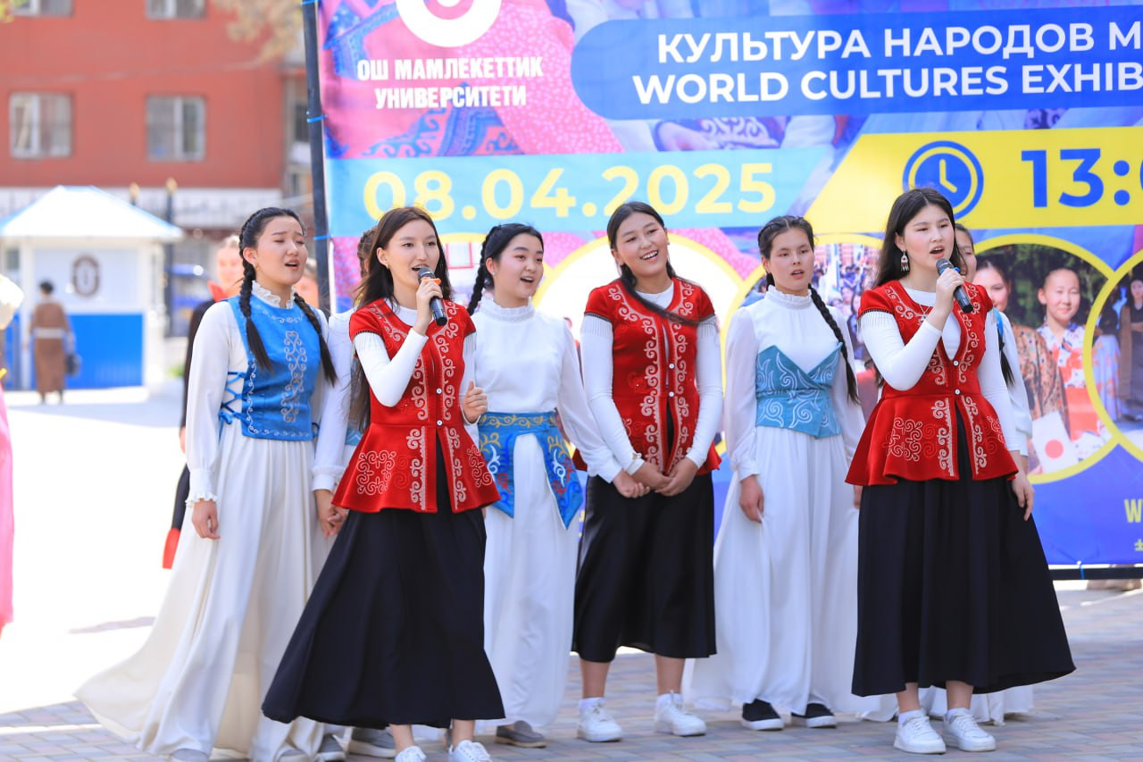 8 Nisan’da Oş Devlet Üniversitesi, uluslararası değişim öğrencileri ve farklı kültürel geçmişlere sahip üniversite çalışanları da dahil olmak üzere çeşitli milletlerden öğrencileri ve personeli bir araya getiren “Dünya Halklarının Kültürleri” yarışmasına ev sahipliği yaptı.