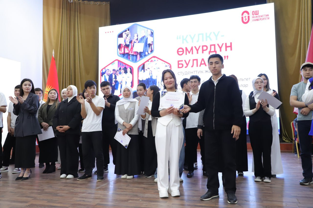 11 Nisan’da Oş Devlet Üniversitesi, “Gülmek Hayatın Mülküdür” yarışmasını içeren “Komik Mucitler Kulübü-2025”e ev sahipliği yaptı. Üniversitedeki çeşitli enstitüleri, fakülteleri ve kolejleri temsil eden yedi takım canlı etkinliğe katıldı.