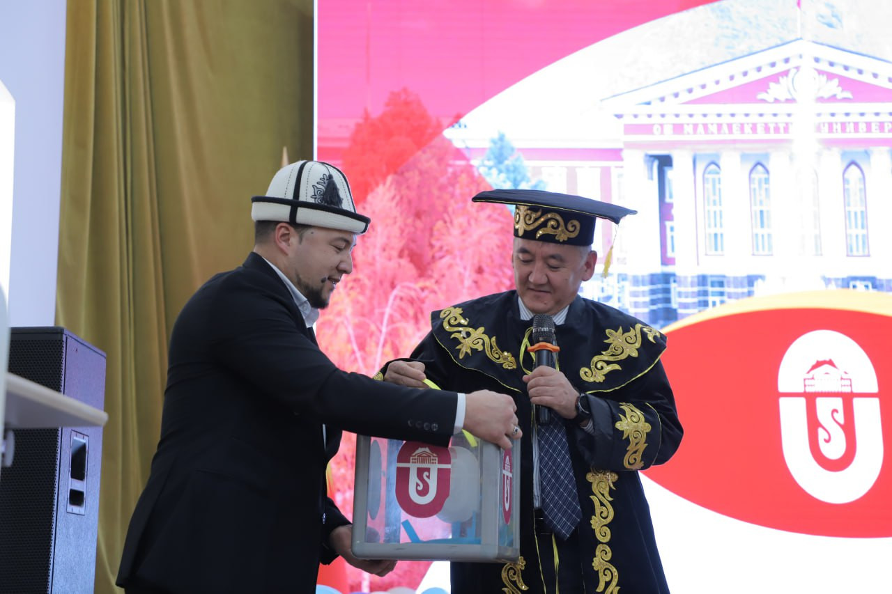 Törene Üniversitemiz Rektörü Kudayberdi Kocobekov, bursun sponsoru ve Sayın Profesörümüz Salı Karimov, Kompanyon Bank temsilcileri, aileler, öğretim üyeleri ve öğrenciler katıldı.