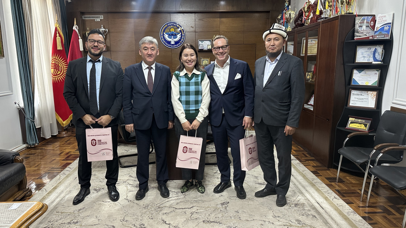 Alman heyeti ayrıca Üniversite Rektörümüz Kudayberdi Kocobekov ile bir görüşme gerçekleştirdi. Görüşmede, öğrenciler için uluslararası staj ve istihdam olanaklarını genişletmeye yönelik iş birliği alanları ele alındı.