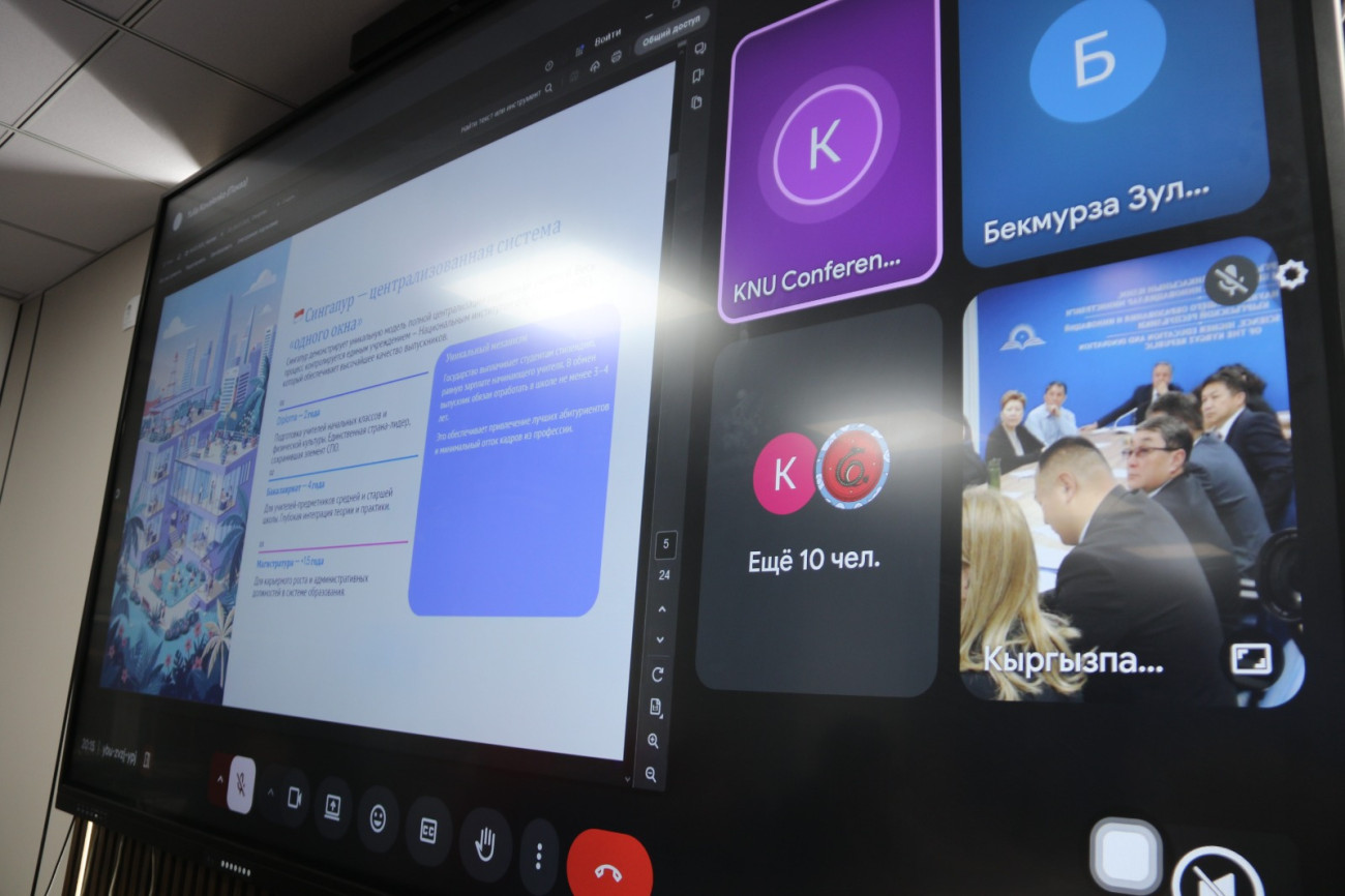 Toplantıda Durus Kozuev, pedagojik eğitimin dönüşümüne yönelik Yol Haritasının uygulanması hakkında bilgi vererek elde edilen sonuçlar ve önümüzdeki temel yönler hakkında konuştu. Ayrıca orta ve yüksek pedagojik eğitimin mevcut durumu analiz edilip, 12 yıllık okul eğitiminin uluslararası deneyimi incelendi ve bunun Kırgızistan’da öğretmen yetiştirmede uygulanma imkânları değerlendirildi.