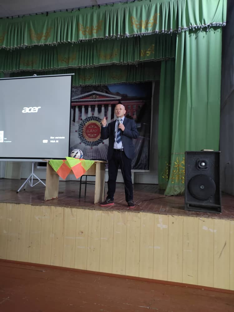 FIFA hakemi, Dünya Kupası rekor hakemi, AFC'nin en iyi hakemi, ülkenin futbol hakemlerini yetiştirme okulu başkanı Bahadır Kochkorov, Oş Devlet Üniversitesi Doğa Bilimleri Fakültesi'nde futbolseverler için bir seminer düzenledi.