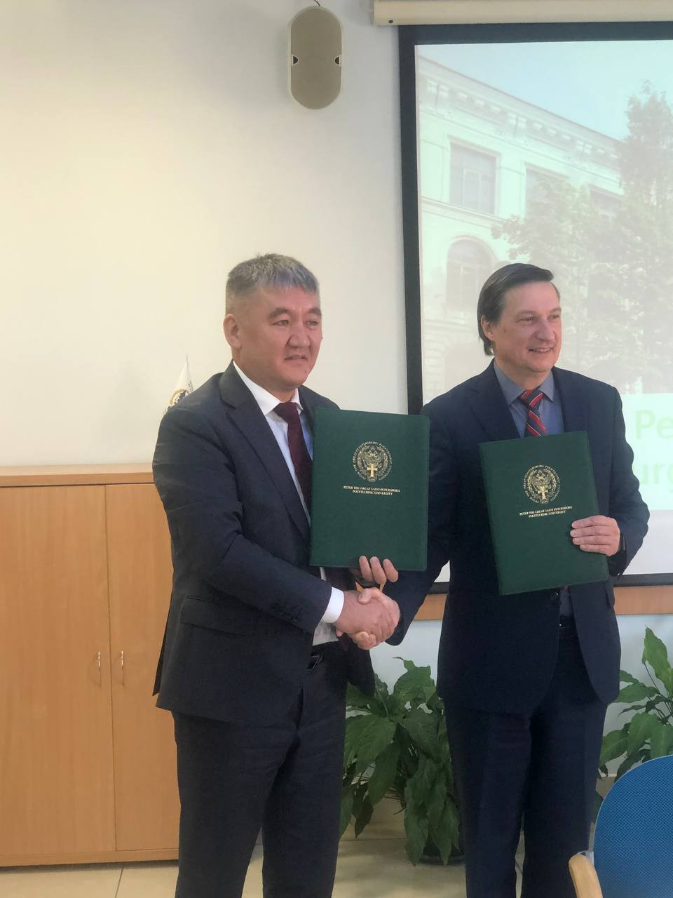 Kudaiberdi Kocobekov, St. Petersburg Üniversiteleri rektörleri Konstantin Ivanov ve Dimitri Arsenieviç ile bir araya geldi ve ilgili işbirliği anlaşmalarını imzaladılar.