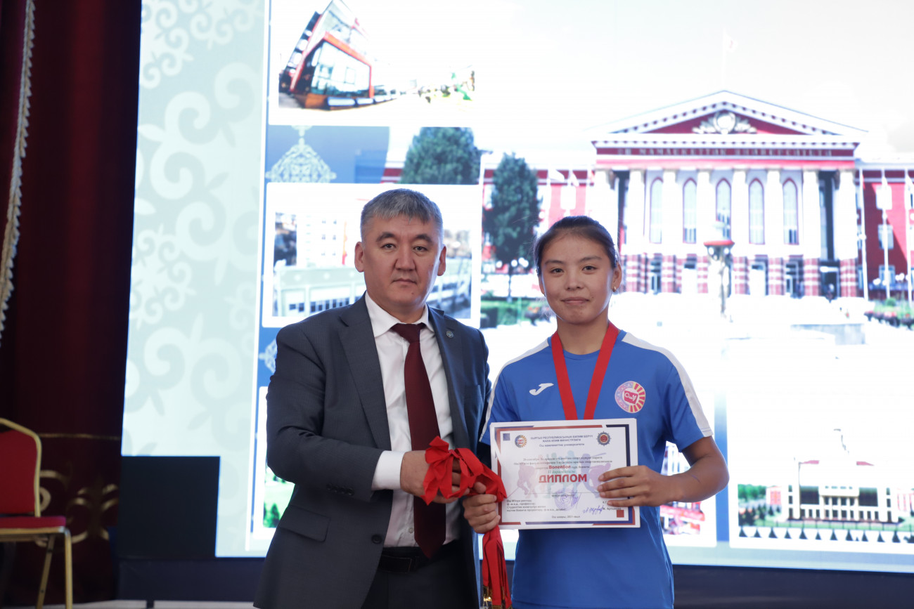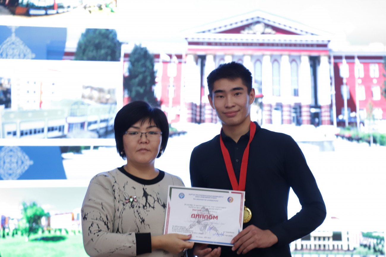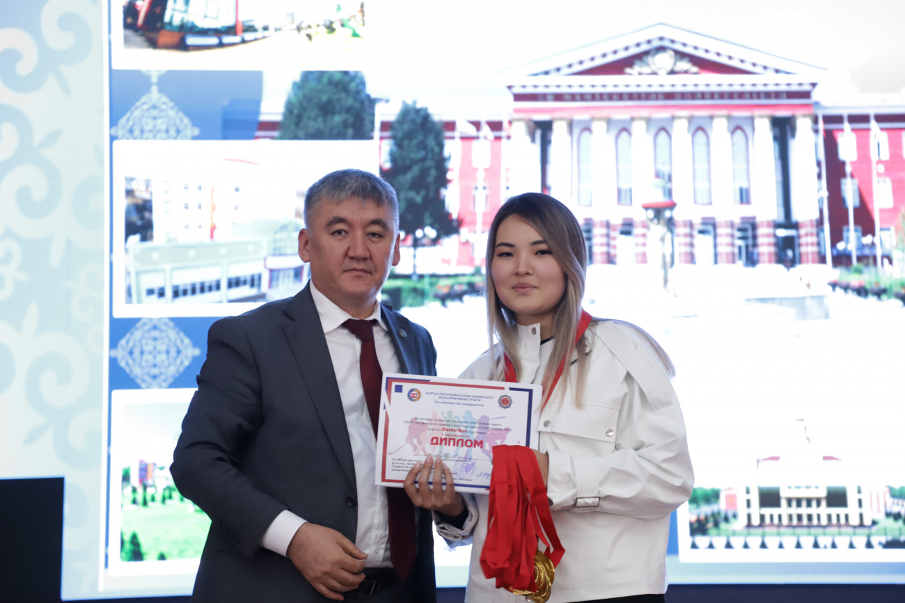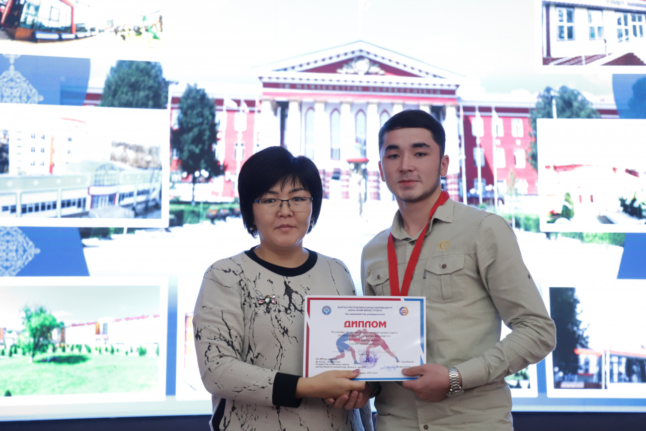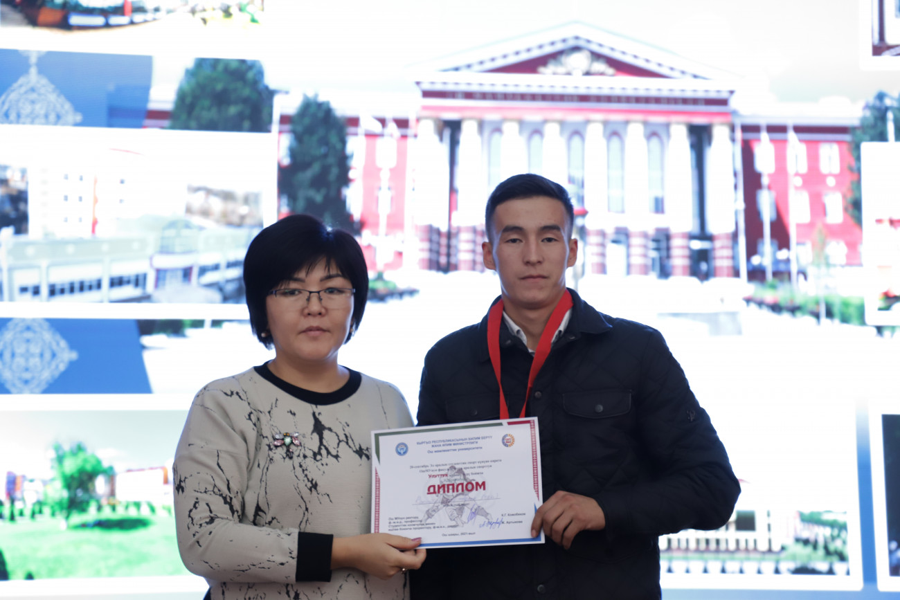 Ödül törenine Üniversite Rektörü Kudaiberdi Kozhobekov katıldı ve yarışmaya katılanları ve kazananları tebrik etti.