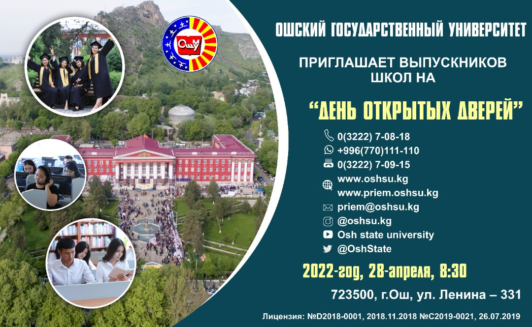 28 Nisan'da Osh Devlet Üniversitesi'nin ana binasında bir "Açık Gün" düzenlenecek.